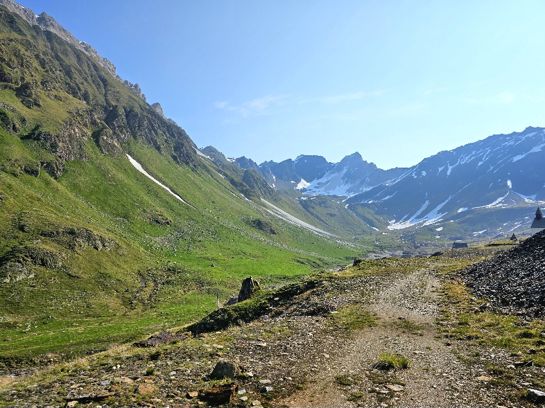 „Das Hüttenleben kann schön sein“. So endete der Eintrag gestern… da rechnet man aber nicht damit, dass die 30 Italiener sowas wie die Hüttenruhe nicht kennen und sich ewig laut auf den Zimmern noch unterhalten haben. Somit war dies eine furchtbare kurze Nacht, drei Kaffee floßen am Morgen die Kehle herunter, um die Lebensgeister wieder einigermaßen zu wecken. Ursprünglich wollte ich heute über den Gipfel des Hochwart wandern, um dann zur Hochalm abzusteigen. Nachdem ich am Vortag sehen konnte, dass die Nordseiten der Scharten noch schneebedeckt sind, entschied ich mich für Plan B – Abstieg zur Passstraße, kurzes Stück mit dem Bus und dann Aufstieg über die andere Seite.