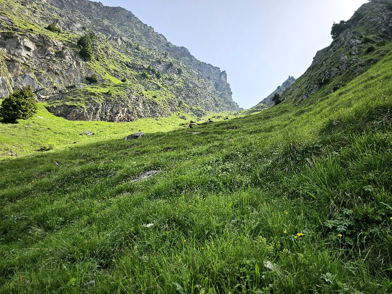 Dann hieß es Abschied nehmen von den Wanderbegleiterinnen aus dem Erzgebirge, da diese nun geplant wieder abstiegen. Für mich ging es dagegen natürlich weiter und durch menschenleeres Gebiet innerhalb der Texelgruppe. Nur die Sonne war früh um 9 schon mein ständiger Begleiter und heizte direkt ordentlich ein.