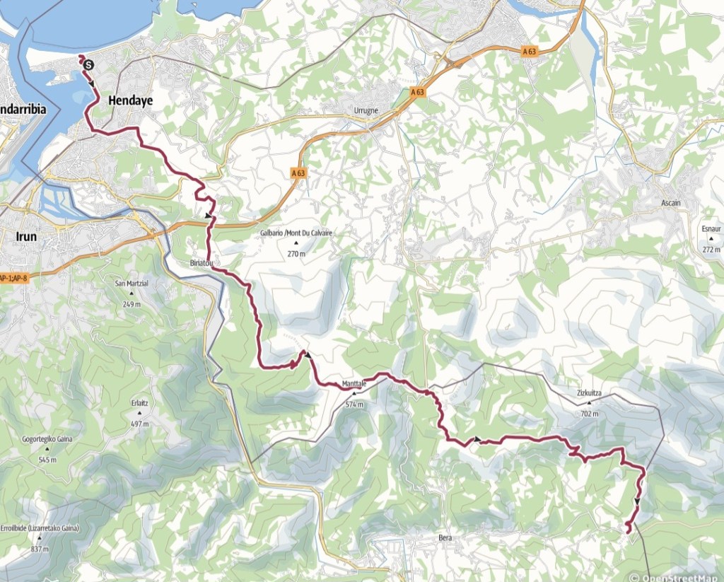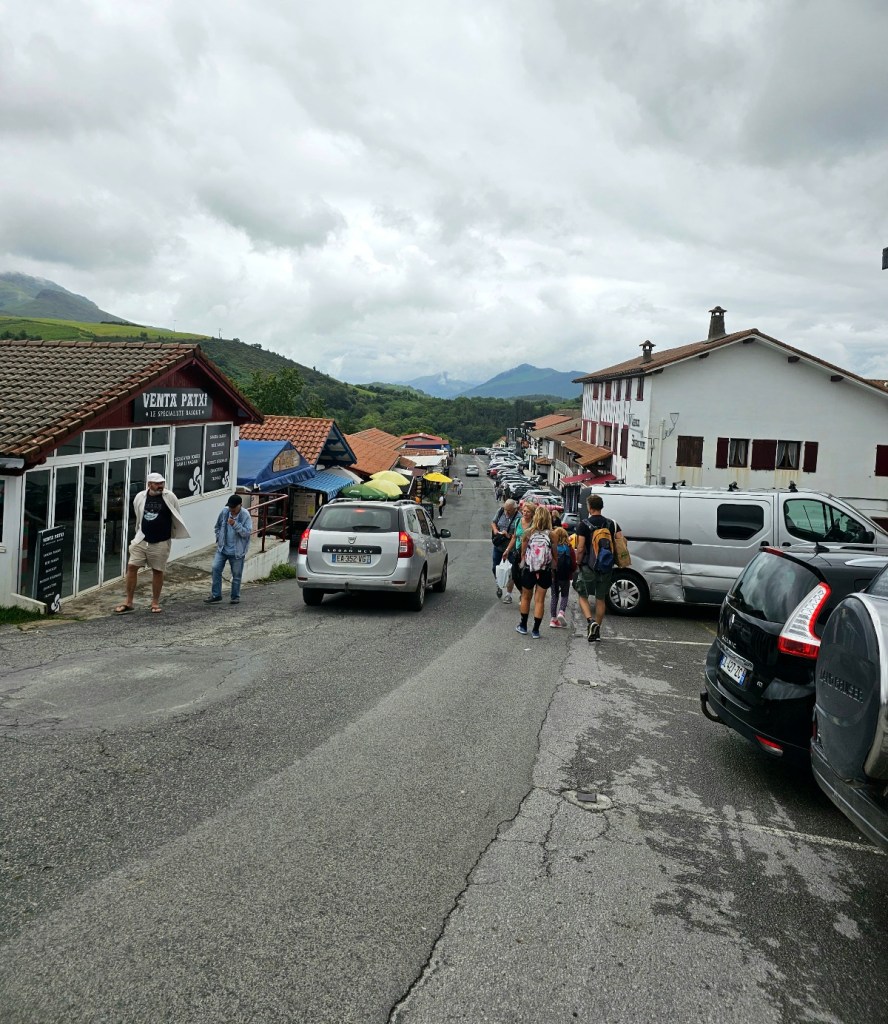 An jeder Kreuzung musste das Handy rausgeholt werden, um sicherzugehen, wo es lang ging. Während in den Alpen gefühlt aller 50 Meter ein Schild hängt, ist es hier reines Glücksspiel. Teilweise finden sich die Zeichen erst 100m nach den Kreuzungen. Flugs kam ich zum Col d’Ibardin – hier hatte ich schon vorab gesehen, dass es was zum einkaufen geben könnte, allerdings wurde ich vom Ausmaß doch überrascht. Der kleine Pass zwischen Frankreich und Spanien ist oben komplett mit Shops und Restaurants zugekleistert und wird zum Sonntag auch extrem frequentiert. Also Auftritt Ronny – mitten in die Menschenmengen, die sich zum Sonntagsessen schick gemacht hatten, kam der schwitzende, dreckige und stinkende Wanderer an und durchschritt die Menge. Wie Moses einst das Wasser teilte, so machten die Leute für mich Platz. Im Supermarkt gönnte ich mir noch ne Fanta und ich glaube, die haben direkt hinter mir gewischt.