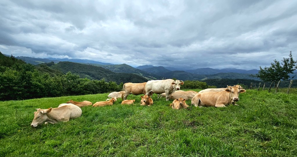 So ging es dann dem Ende der heutigen Startetappe zu – der Kilometerzeiger schnellte unerbittlich auf 25 hoch, die Höhenmeter nach oben auf 1000. Joar – guter Einstieg würde ich sagen, dabei nur zwei kleine Pausen und den Rest einfach durchgelaufen. Die letzten Meter ging es dann direkt auf der Grenze entlang und mein Handy drehte fast durch, weil es sich ständig abwechselnd in das jeweilige Landesnetz einwählte und mir dann eine SMS dazu schickte. Meine heutige Unterkunft ist das Hostal Lizuniaga im Nirgendwo – wunderschöner Blick zum Berg, gutes Zimmer, reichhaltiges Abendessen und ein Bier. Am Ende ein schöner erster Tag – anstrengend, aber die Beine haben super funktioniert. Morgen wird es noch länger 😀
