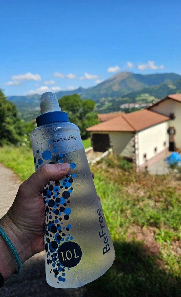 Kurz vor Schluss komme ich noch an einem kleinen Friedhof vorbei und kann dort zum ersten Mal meinen Wasserfilter ausprobieren. Klingt etwas grotesk, aber Friedhöfe sind für Wanderer mitunter eine absolut unerlässliche Wasserquelle. Da ich nicht weiß, ob es komplett rein ist, wird der neuerworbene Katadyn Be Free mal probiert. Wasser rein, Verschluss mit der Membrane drauf und dann draus drinken – die Membrane filtert Bakterien raus. Schmeckt soweit okay und wird definitiv noch sehr wichtig werden.