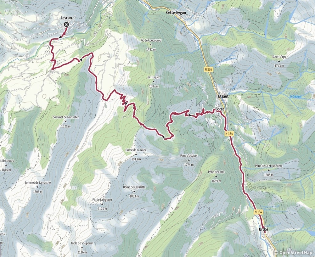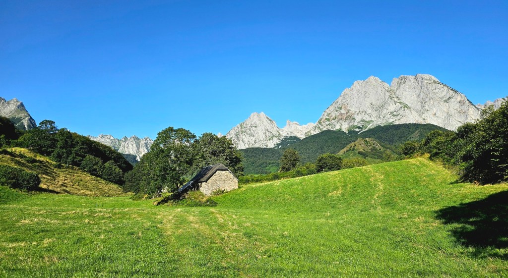 Normalerweise würde die Etappe hier enden, aber das wäre ja langweilig… also geht es noch 5 Kilometer weiter. Ich kann mein Wasser auffüllen, unterhalte mich noch mit einem Franzosen, den ich am Berg getroffen habe (und der den Abstieg einfach rannte…) und stürze mich dann auf die Straße. Die ist durchaus gut befahren, es nervt, aber ich treibe meine Beine immer weiter an. Dieser Tempomarsch am Ende hat den Charme, dass ich diesen morgen nicht gehen muss… Schlussendlich komme ich im kleine Urdos an und beziehe kaputt, aber zufrieden mein Zimmer.