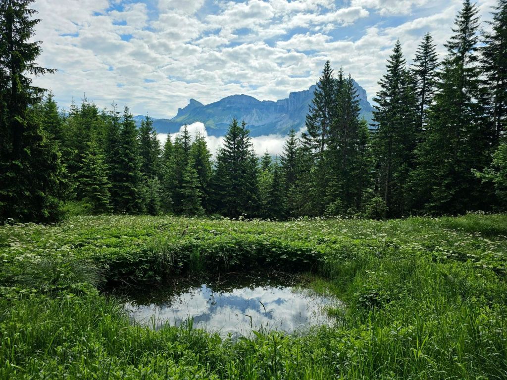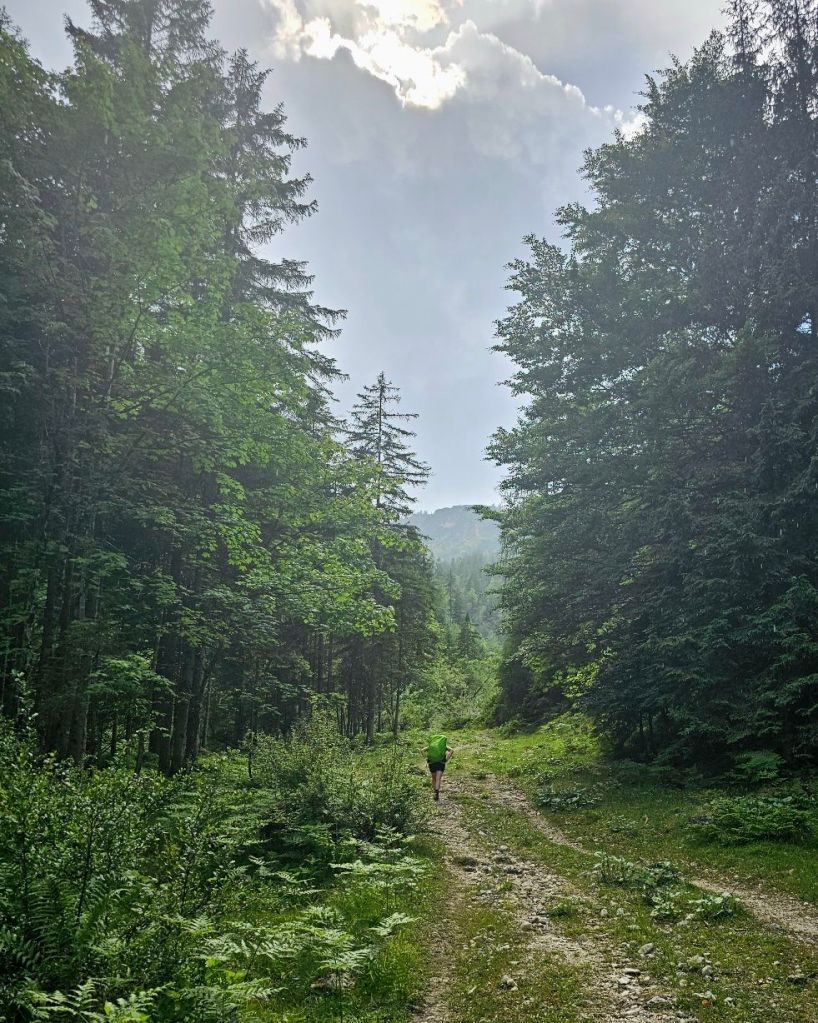 Sehr früh sollte es für uns auf der Blaa-Alm losgehen, Frühstück gegen 8 und dann Start. Doch hatten wir nicht mit dem reichhaltigen Buffet gerechnet, zudem gab es fünf Spiegeleier in einer Pfanne… Naja, fast schon zu viel gestärkt, begaben wir uns auf dem Weg. Und nach kurzer Zeit wurde es schon ungemütlicher – steil ging es im Wald hinauf, durch nächtliche Regenschauer waren die Wege sumpfig und verschlammt, Baumstämme lagen quer und zwangen uns, limboartig unter diesen hindurch zu balancieren.