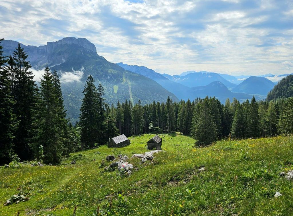 Nach etwas über eine Stunde erreichten wir die Ausseer Sandlingalm, machten kurz Pause und dann ging es weiter. Wir waren schon gut durch, doch es ging weiter hoch. Vorbei an der Vorderen Sandlingalm hatten wir nun den namensgebenden und höchsten Berg der Ecke umrundet, den Sandling.