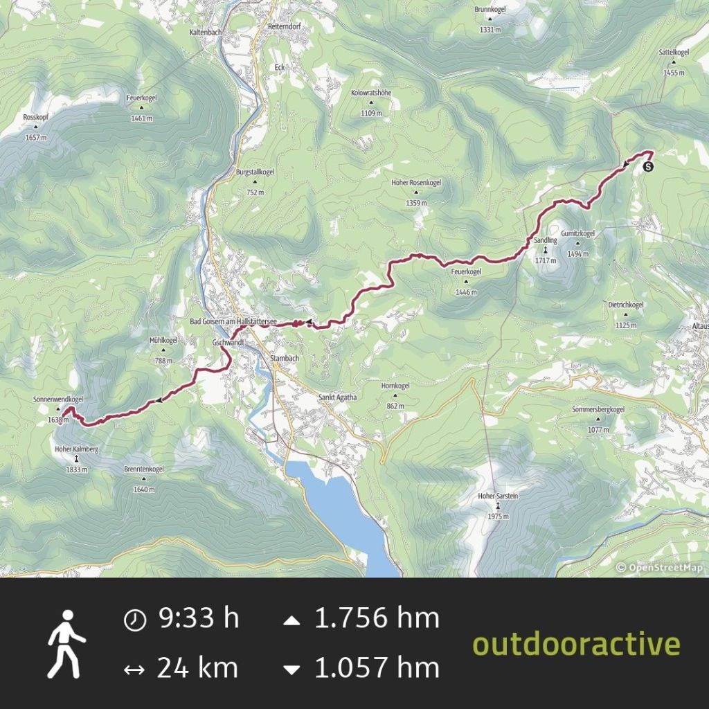 Die Tour vom Donnerstag – Packen wir die Details direkt auf den Tisch – 24 gelaufene Kilometer, dabei über 1.700 Höhenmeter Aufstieg und über 1.000 Höhenmeter Abstieg in neuneinhalb Stunden. Und das alles an einem Tag.