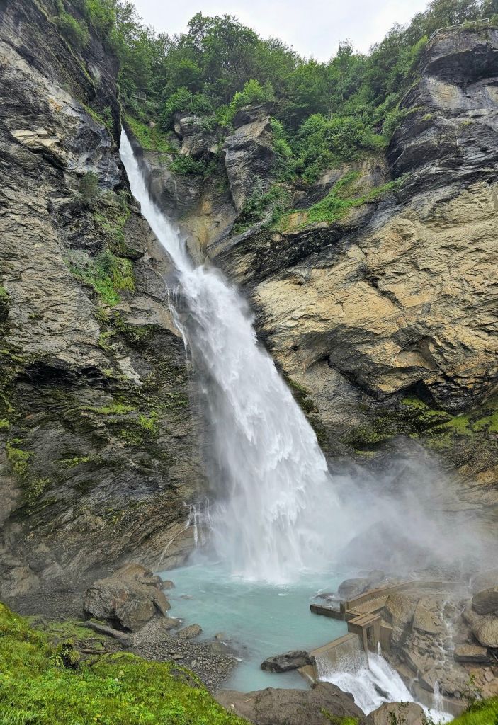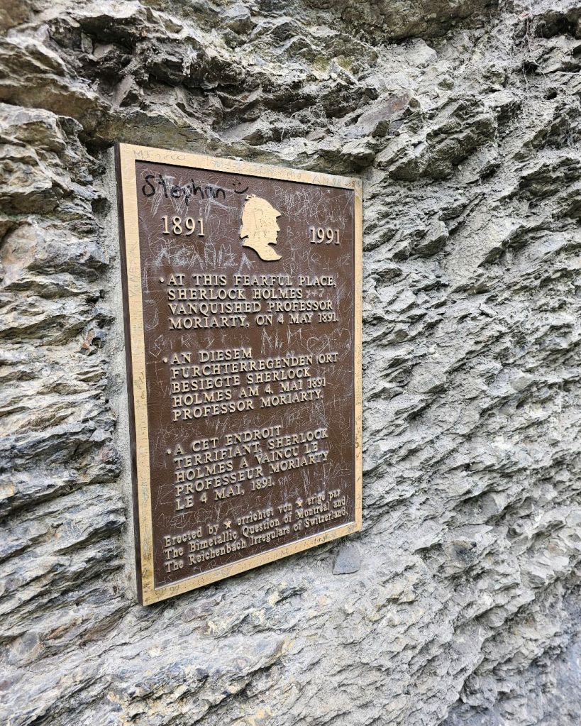 Der Weg hoch zum Reichenbachfall war dann doch recht schnell geschafft, durchaus beeindruckend stürzen hier die Wassermassen Richtung Tal und sorgen für ein ohrenbetäubendes Getöse. Der Ort hat zudem einen hohen literarischen Wert – denn hier stürzte der Meisterdetektiv Sherlock Holmes zusammen mit seinem Gegenspieler Professor Moriarty in den (vermeintlichen) Tod.