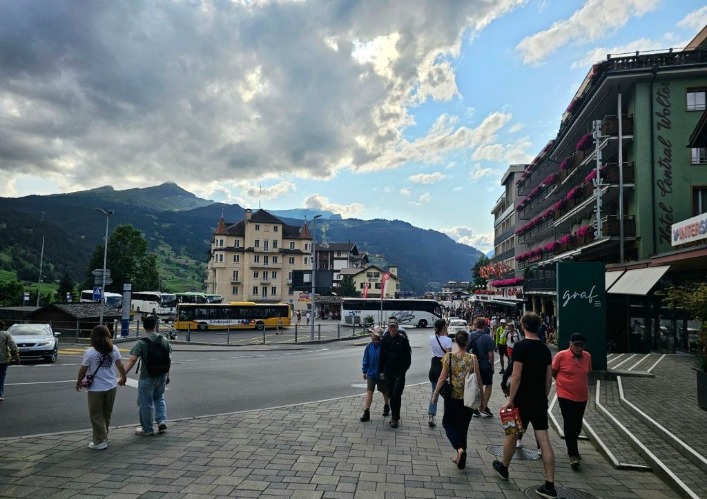 Es ist die perfekte Szenerie für den Abschluss dieses Wandertages – den langen Abstieg nach Grindelwald erspare ich mir, entlasten damit die Knie und belaste mal weiter die Kreditkarte (27 Franken für einmal ins Tal, völlig irre). Und unten in der Kleinstadt erwartet mich dann ein kleiner Kulturschock. Denn der Ort ist nicht nur voller Touristen, zu 80% sind diese aus Asien, was wirklich unglaublich interessant ist. Klar, Grindelwald ist wahrscheinlich eine der Orte, die das Alpenbild am meisten zelebrieren. Direkt vor dem Eiger gelegen gibt es hier alles mögliche für Touristen, tausende Ausflugsmöglichkeiten. Gefühlt spricht auch jeder Englisch.