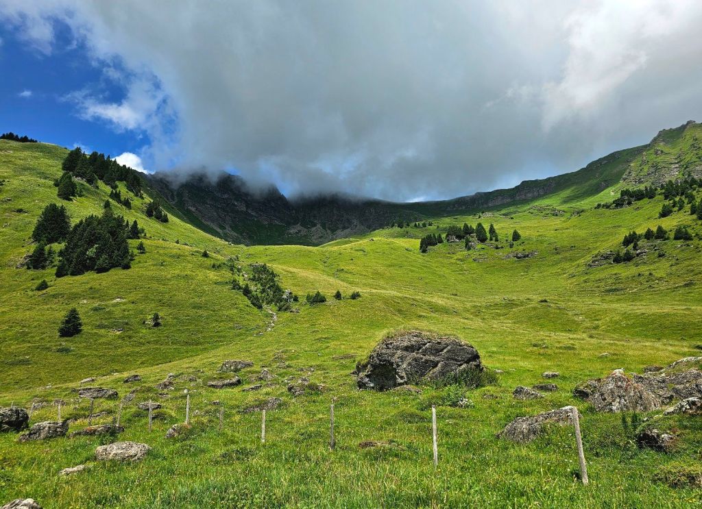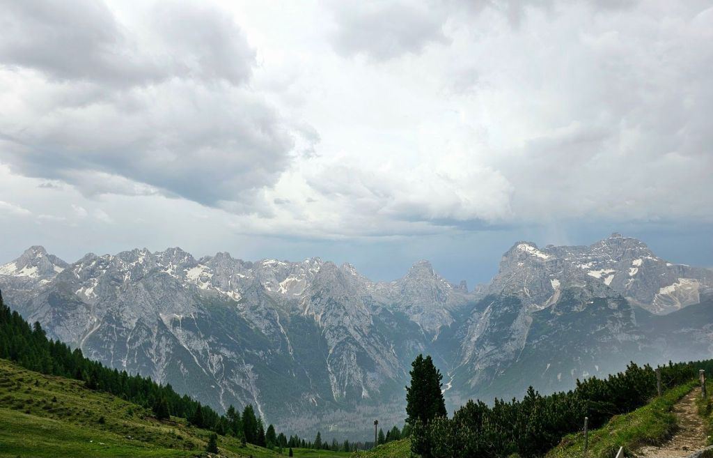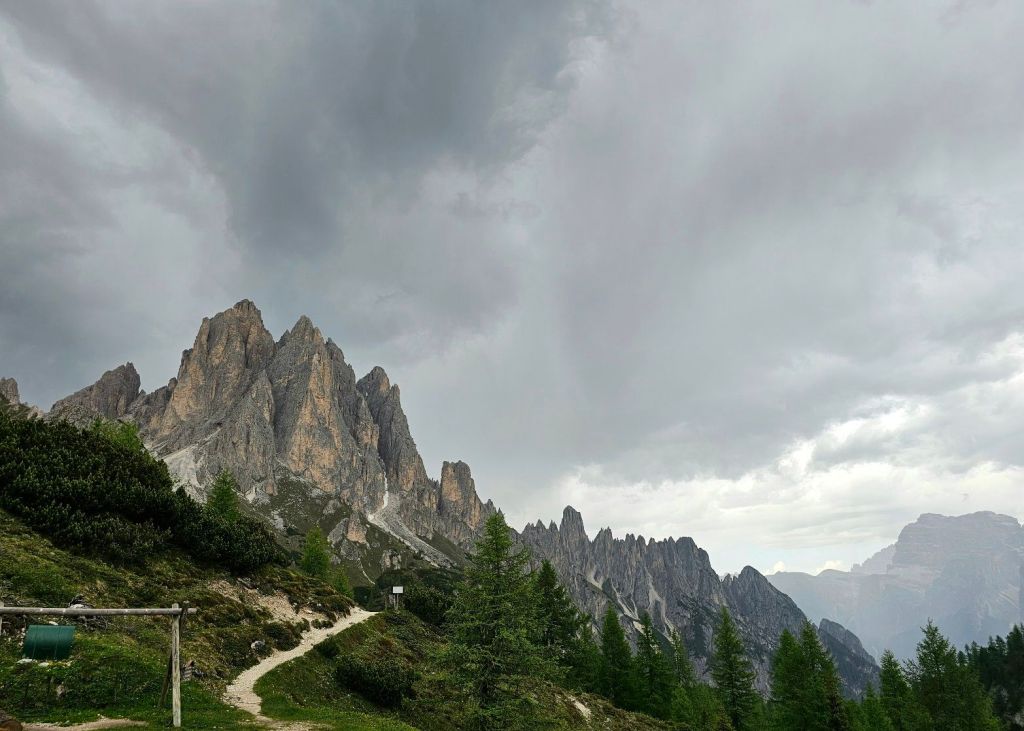 Mittwoch, 18.06. 2025 – schon morgens strahlt die Sonne über die Pralongia-Alm. Die Marmolada und Sella grüßen uns, doch unser Weg geht wieder Richtung Osten. Bei der Planung hatte mir diese Etappe sehr viel Kopfschmerzen bereitet, denn schon Monate vorher war quasi alles in der Umgebung ausgebucht. Einzig die Ra-Stua-Alm hatte noch Plätze, aber dafür war ein Marsch von über 26km und gut 9h einzuplanen. Auf dem Papier irgendwie wohl machbar, aber wenn man einmal vor Ort ist, hält man das meistens nicht mehr für die allerbeste Idee.