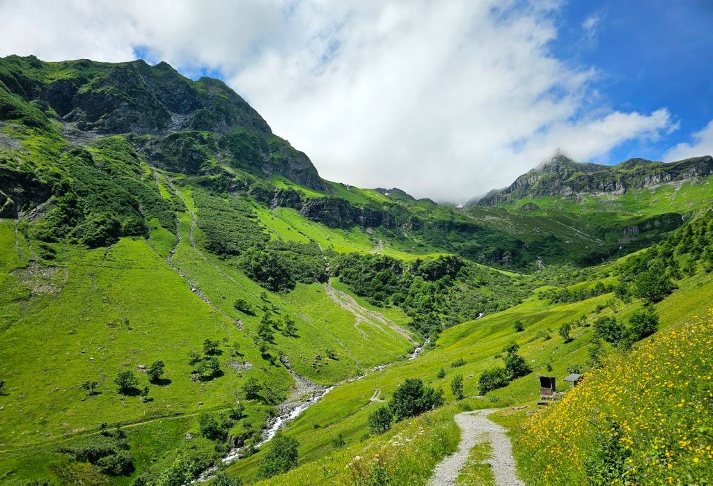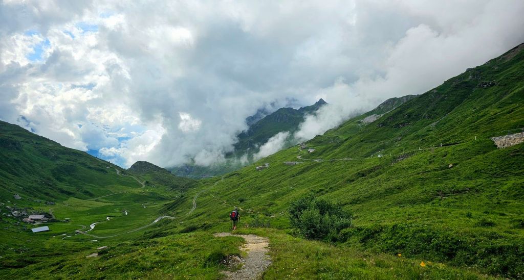 Der ursprüngliche Etappenplan für die Tour sieht nun den direkten Übergang ins nächste Tal vor, eine absolute Marathonetappe über zwei Pässe. Hier hatte ich mich vorab schon entschieden, dass ganze aufzusplitten und heute nur den Berg hochzulaufen. Demzufolge wird es zeitlich entspannter und ich starte erst nach 10. Das Hotel nahm es aber auch sehr genau und klopfte um 10:01 Uhr an mein Zimmer, dass ich doch bitte auschecken soll. Ja, liebe Leute, ich hab Urlaub, stresst mich nicht.