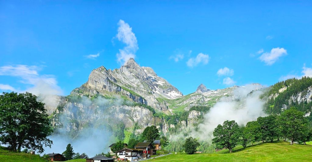 Lauterbrunnen ist nun der nächste Touri-Hotspot, links und rechts beschränken riesige, quasi senkrecht abfallende, Steilwände das enge Tal. Ich kämpfe mich durch die Menschenmassen, beobachte dabei, wie eine asiatische Touristin fast vom Auto überfahren wird, weil sie wegen einem Foto auf die Straße gerannt ist. Kopfschüttelnd geht’s in mein genial gelegenes Hostel. Hier tummeln sich unzählige Basejumper, die mit Wingsuits und Fallschirmen von den Felsen springen, völlig verrückte Typen. Am Abend genieße ich noch den wunderbaren Blick vom Balkon.