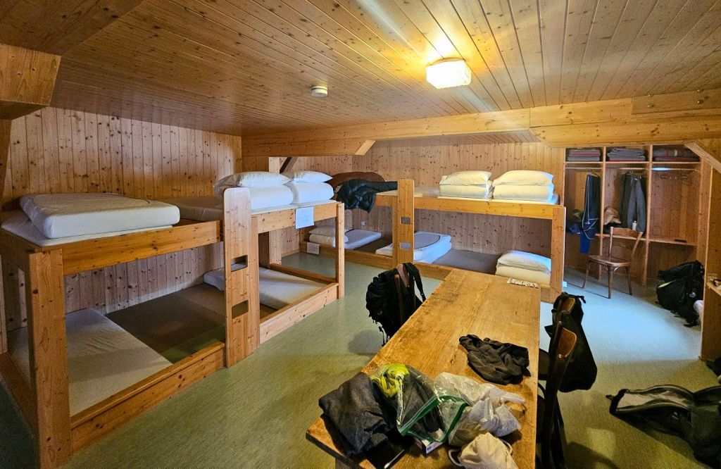 Die Obererbshütte ist nicht groß, bietet 26 Personen Platz und zum Glück sind nur acht Leute da, ansonsten wäre das alles schon extrem eng. Morgen wirds dann wieder anspruchsvoller – mit dem Ärbser Stock und dem Richetlipass stehen zwei Pässe über 2000 Meter an, bevor es sehr steil über Stunden herunter gehen wird. Da müssen die Beine wieder funktionieren.