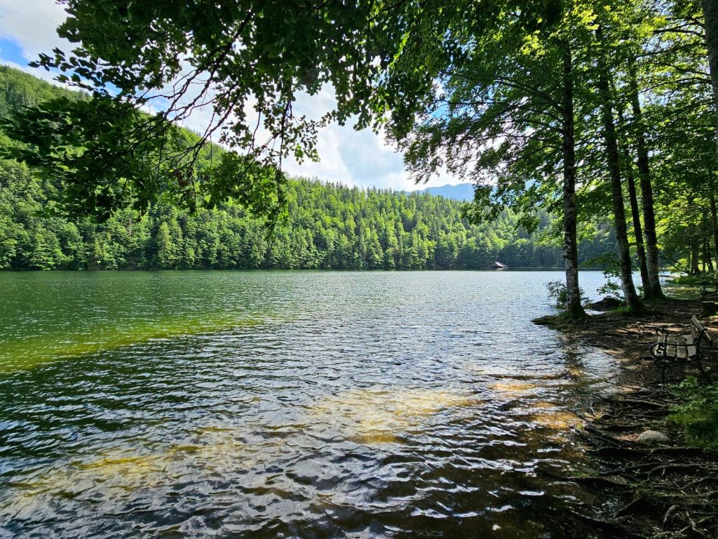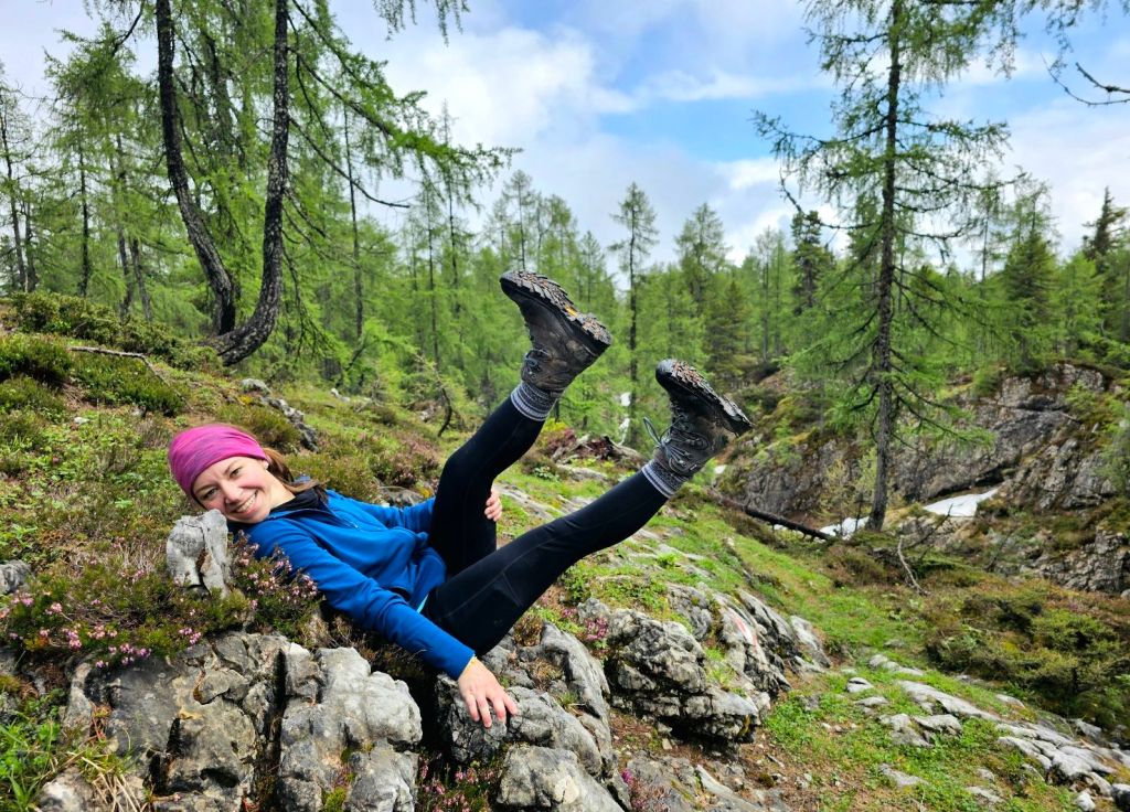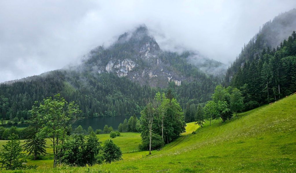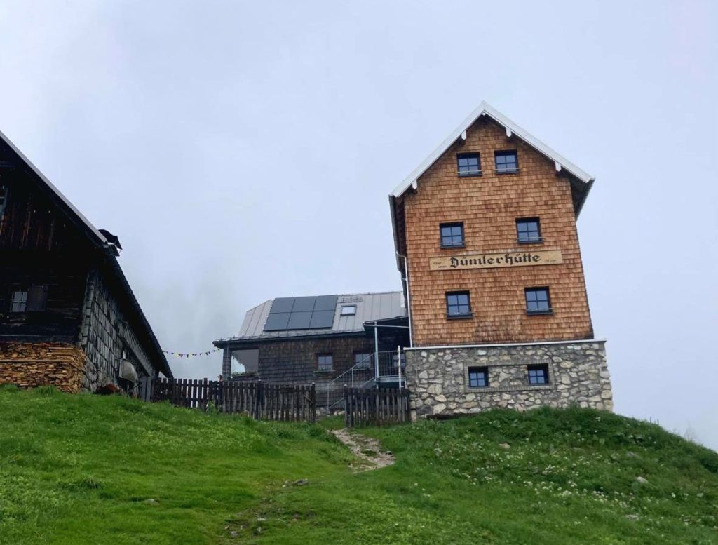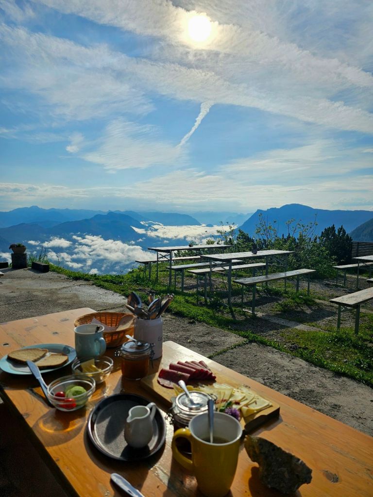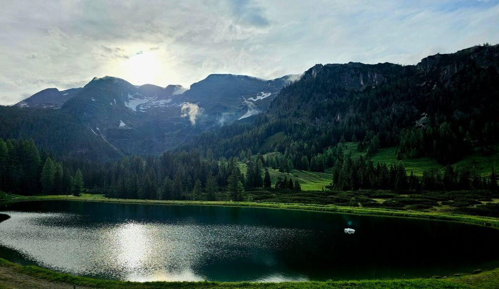 Über Asphalt ging es hinunter ins Tal, wo ich zwei junge Frauen traf, die dann das gleiche Tagesziel wie ich anvisierten. Die beiden sind seit Mitte April unterwegs, gestartet in Triest und durchqueren gerade den kompletten Alpenbogen. Völlig irre (und ein Stück beneidenswert, soviel Zeit für so ein Projekt zu haben – kleiner Wink in Richtung Murnau 🙂 ).