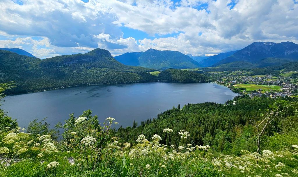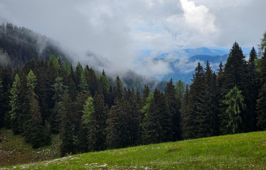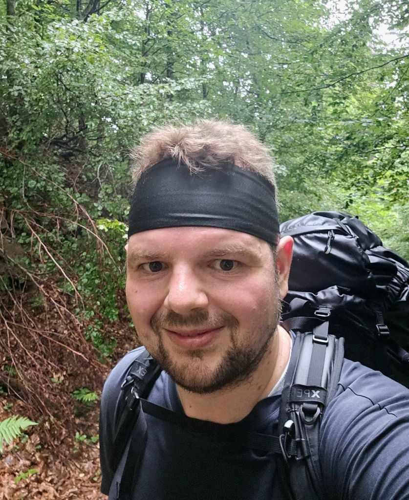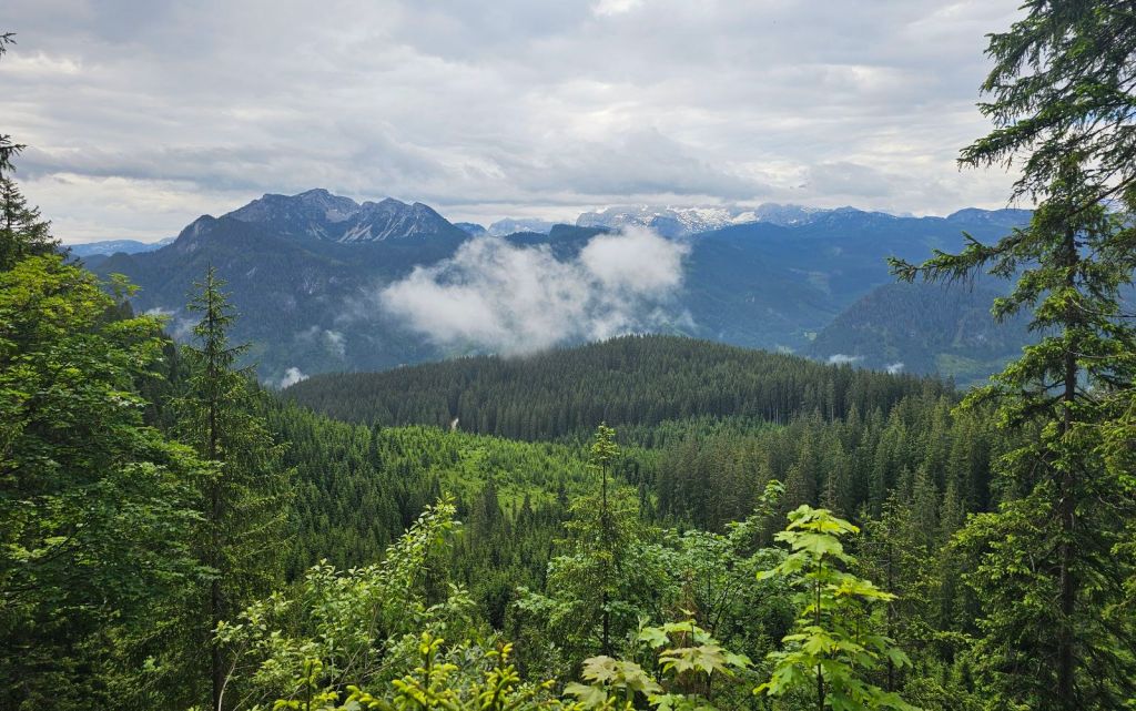 Nach gut 30min Einlaufen auf Asphalt ging es dann in den ersten Anstieg der Tour, gut 500 Höhenmeter hinauf an den Berghang. Glücklicherweise hielt das Wetter bis hierhin, die angesagten gewittrigen Schauer sollten nun erst am Nachmittag kommen. Dennoch war es schwül, mein graues Shirt innerhalb kürzester Zeit durch und farblich nun eher schwarz… aber gut, solche Kleinigkeiten muss man eben ignorieren und die Beinchen weiter nach oben schrauben.