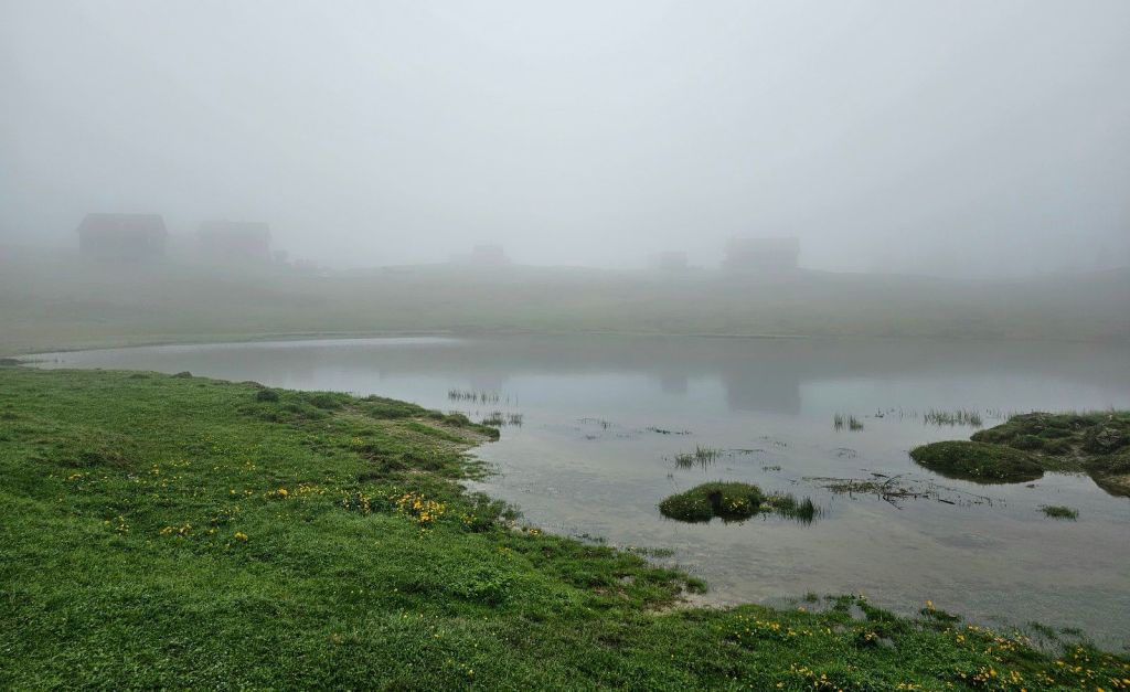 Die Alp Siez besitzt mehrere hundert Kühe, produziert selber Käse und im Nebengebäude gibt es ein gemütliches Schlaflager, welches wir zu sechst belegen. Die anderen drei Gäste sind ebenfalls auf der Via Alpina unterwegs. Währenddessen schüttet es weiter, zwischendurch donnert es auch mal, Petrus lässt gerade seinen ganzen Frust über den Schweizer Bergen aus.