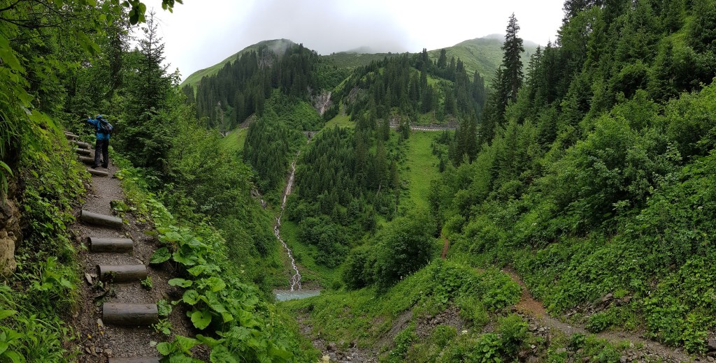 Startpunkt ist auf über 2.200m Höhe am Formarinsee, wobei man recht bequem per Bus bis dorthin fahren kann. Das Alpenpanorama lässt sich hier auch sehen, wobei das Wetter die ersten Tage noch sehr durchwachsen war.