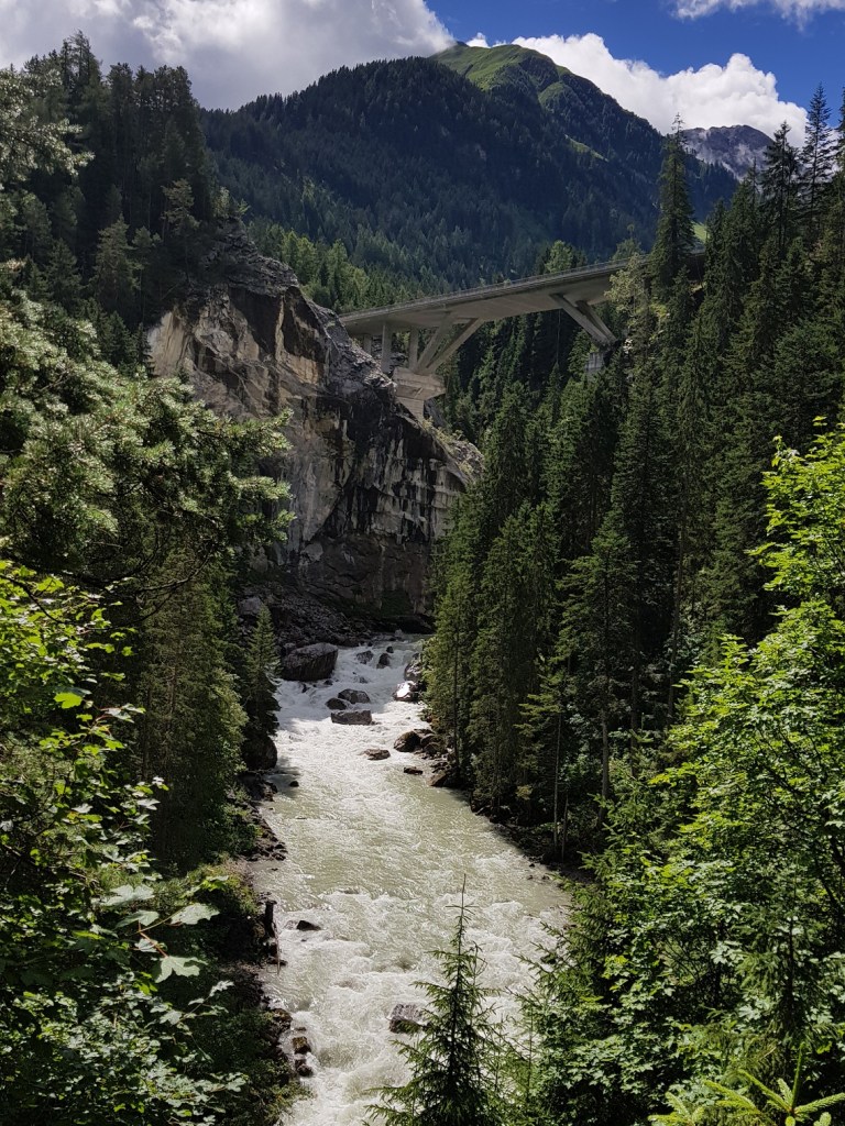 Bestimmt im ersten Teil des Weges noch die alpine Landschaft das Bild, wird es später deutlich flacher und es geht durch grüne Wiesen, während der Fluss immer breiter wird. Leider führt der Wanderweg hier zunehmend über breite Pfade, teilweise auch Asphaltwege, welche durch zahlreiche E-Bike-Fahrer genutzt werden. Das schmälert dann doch auch ein wenig den Wandergenuss. Ein Höhepunkt ist sicherlich die freischwebende Hängebrücke in Holzgau, die mehr als 100 Meter über das Tal führt und eher nur für schwindelfreie Menschen zu empfehlen ist.
