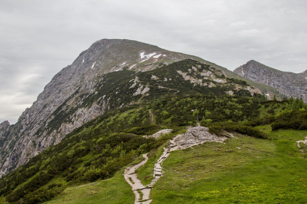 Erste Übernachtung im altehrwürdigen Carl-von-Stahl-Haus, welches gerade erst Saisonstart hatte und somit noch kaum Wanderer anzutreffen waren. Am zweiten Tag sollte es quasi kerzengerade in südlicher Richtung entlanggehen – auf der Karte kein allzu langer Weg und auch die Höhenmeter schienen einigermaßen beherrschbar. Nun denn – von der Hütte ging es direkt steil auf den Schneibstein hinauf, mit über 2.200 Meter auf dieser Seite ein durchaus beachtliches Hindernis. Mal wieder viel zu vollgepackt (zwar kein 2kg-Stativ dabei, aber trotzdem wieder die große Spiegelreflexkamera), war der erste Berg auch schon konditionell ein Scharfrichter.